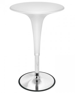 Retro design combined with adjustable height hydraulics make this bar table functional as well as good looking. Extends from 31 to 40 inches high. Made of chrome and plastic.