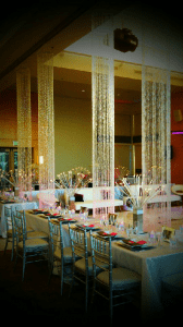 You can also straighten out the top metal hoop and use crystal columns to wrap around hideous support poles or anything else you might need to conceal.